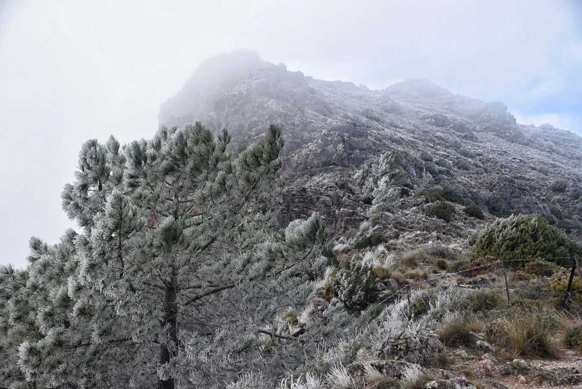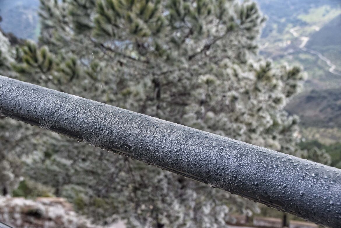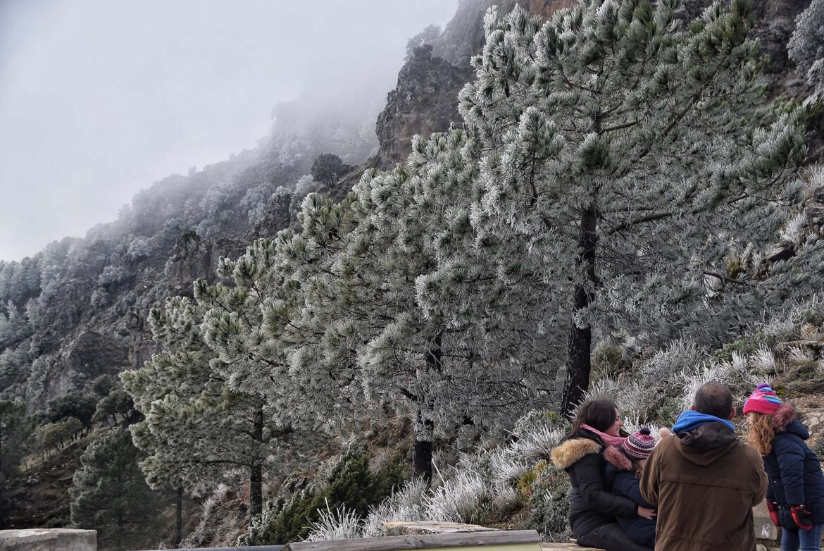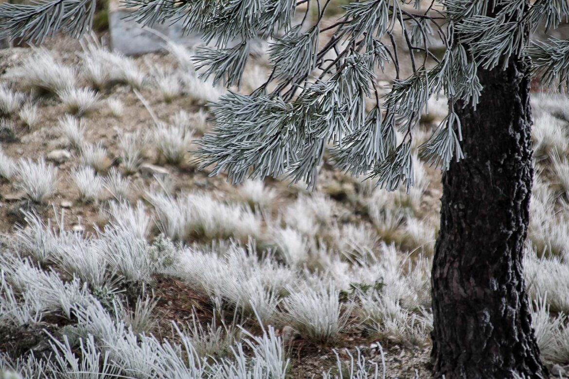 La helada nocturna permanece durante la mañana cuando el termómetro desciende de los cero grados. Es, entonces, una buena ocasión para subir hasta el privilegiado mirador que se localiza junto a la cima del Puerto de las Palomas.