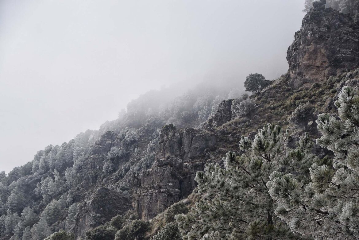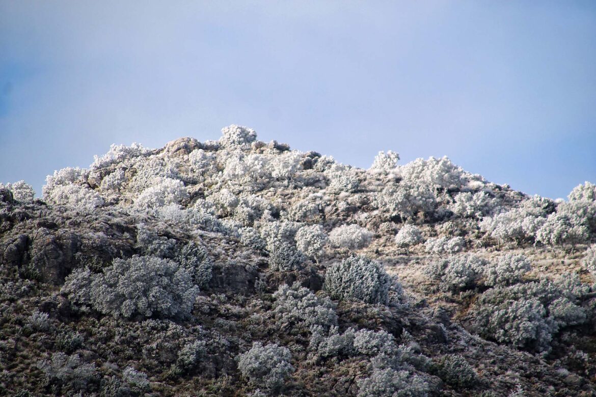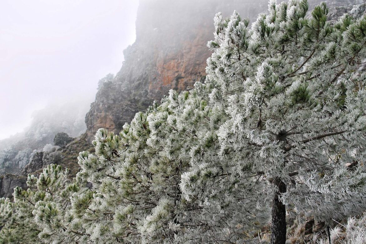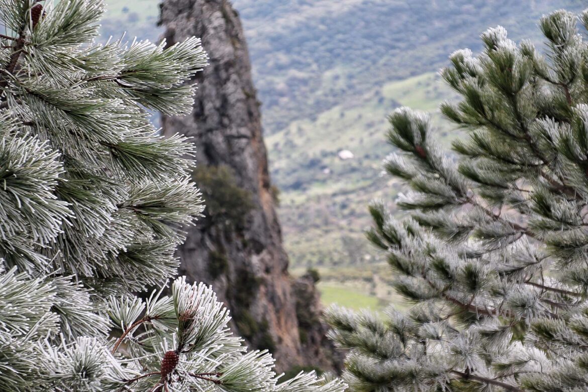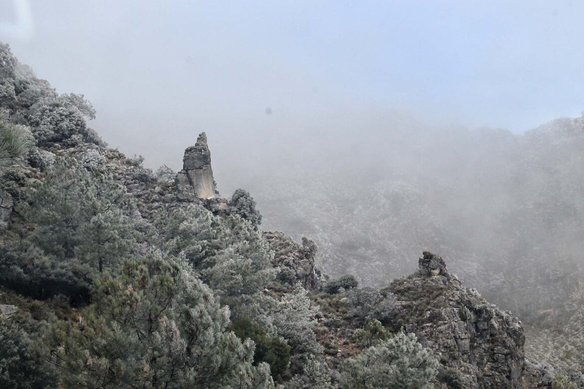 La helada nocturna permanece durante la mañana cuando el termómetro desciende de los cero grados. Es, entonces, una buena ocasión para subir hasta el privilegiado mirador que se localiza junto a la cima del Puerto de las Palomas.