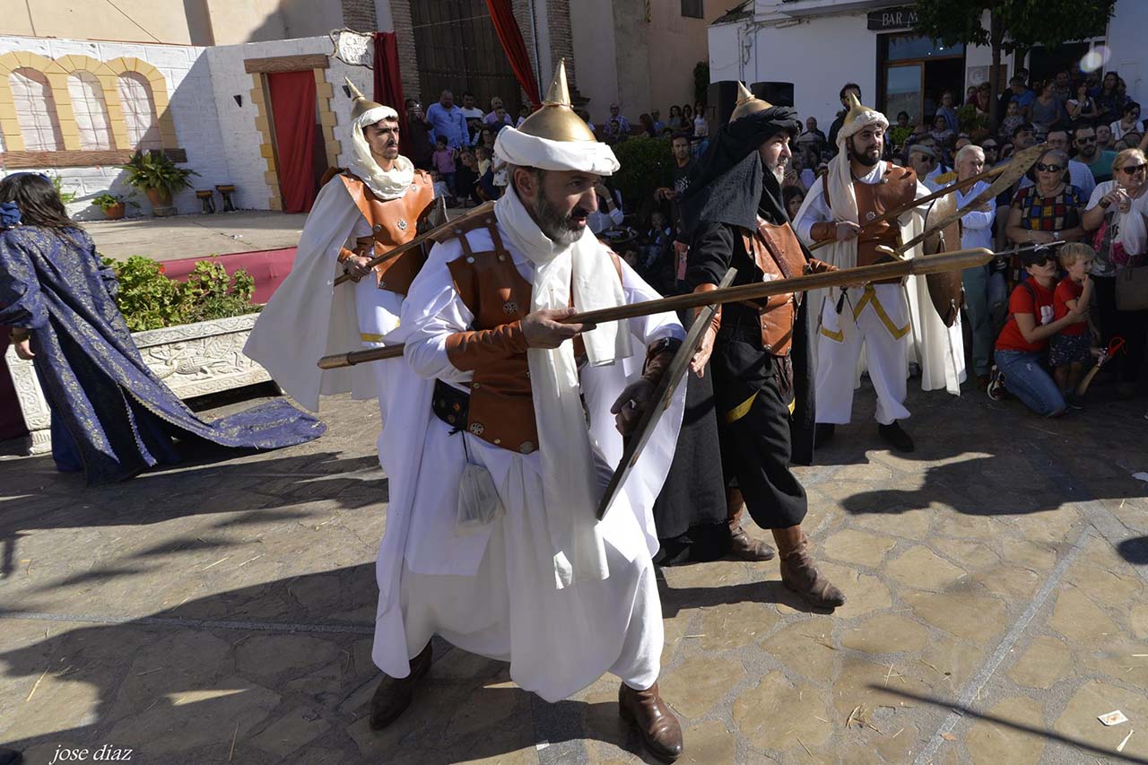- 11.00 h. El Mercado abre sus puertas. - 13.00 h. Danzas Infantiles ‘Los Pícaros’. Plaza del Rey. - 13.30 h. Intercambio de Alimentos-Puerto Seco. Alameda de Lepanto. - 16.00 h. Disputa de Lavanderas. Rincón de la Perica. - 17.30 h. Danzas Amaias, danzas Nazaríes y Harem. Atrio de la Iglesia, en la Plaza del Rey. - 20.30 h. Recreación Leyenda de Las Palomas. Alameda de Lepanto, Mirador del Altillo y Puerta de la Ermita. - 23.00 h. Danzas Cristianas. Campamento Cristiano. - 23.10 h. Espectáculo ‘Nómadas’ y brindis de la Victoria en Alameda de Lepanto. Campamento Cristiano.