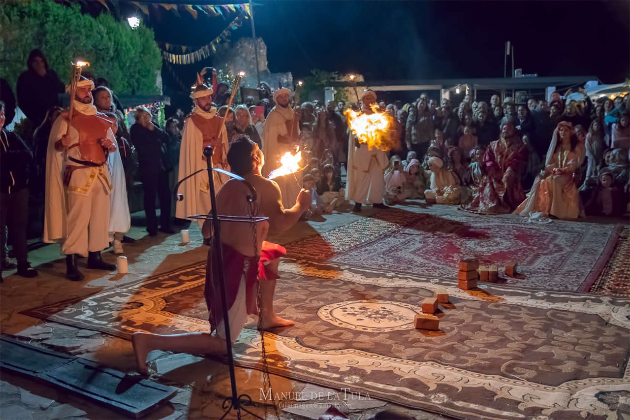 La tarde cruza la frontera hacia la noche y a los pies de la imponente peña que sostiene la Torre del Homenaje se vislumbran unas figuras. Zahara, su recreación, está a punto de vivir uno de sus momentos más emocionantes y esperados, la escalada de los guerreros cristianos. Sobran las palabras.
